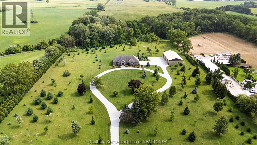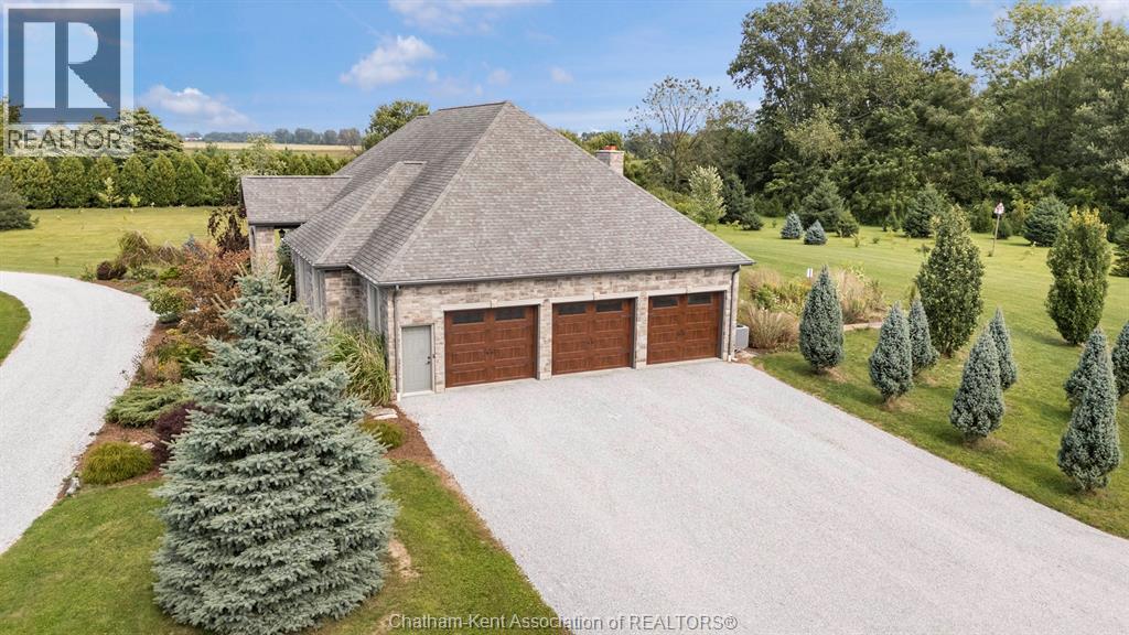 Attention discerning Buyers: A property like this is extremely RARE - No detail was left untouched on the design and materials used for this stunning custom built 4 bedroom, 4.5 bathroom Rancher! Nestled on a treed, 11.5-acre lot just 2 minutes from town, this property includes certified wildlife gardens, 2.5 acres of natural woodlot, 67 tree varieties including apple, pear, plum, and cherry and...endless privacy and serenity. Inside, a welcoming foyer with gorgeous ceiling details opens to the gourmet kitchen with a 10x5 granite and aged maple island, and high end appliances including gas stove. Details impress throughout—7” wide plank hardwood, 10’ ceilings and crown moulding, Hunter Douglas California shutters, 8’ doors, a floor-to-ceiling stone gas fireplace surrounded by more gorgeous custom cabinetry, and a wrought-iron wine cellar. Large windows and doors lead to a covered stamped concrete deck with outdoor fireplace, perfect for gatherings, relaxation, or even a future pool or hot tub. The Primary bedroom retreat features garden doors, a custom walk-in closet, and a spa-like ensuite with floor to ceiling porcelain walk-in shower, clawfoot tub, dual basins, and private water closet. A versatile 2nd bedroom/office with built-ins, walk-in pantry, laundry/mudroom, and powder room complete the main floor. The custom spiral maple staircase leads to the finished lower level with 2 large bedrooms with oversized windows—each with walk-in closets and ensuites—plus a recreation room, home theatre, utility space, garage entry, and more storage. The impressive 88’ x 48’ shop offers 3 oversized doors; 1 section with full insulation, temperature control, and a 3-piece bathroom. Ask for the list of extras and custom features—this property is truly one of a kind and an investment that offers endless possibilities. (id:4069)
